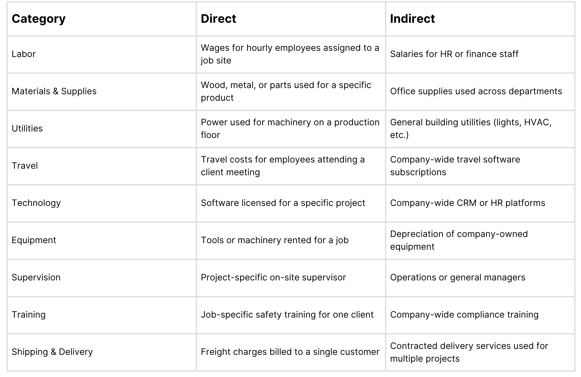 Indirect costs support a business’s overall operations but cannot be directly tied to a specific product, service, or project. These costs are often fixed or semi-variable and shared across multiple activities. These costs are necessary to keep the business running but do not directly contribute to the creation of a specific item or service.
